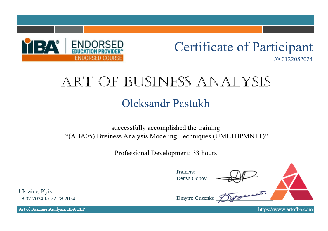 (ABA05) Business Analysis Modeling Techniques (UML+BPMN++)