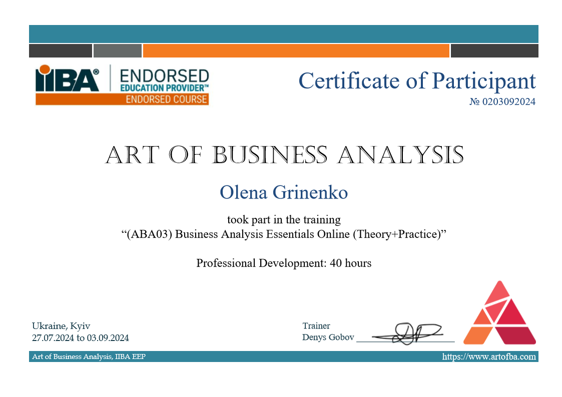 (ABA03) Business Analysis Essentials Online (Theory+Practice)