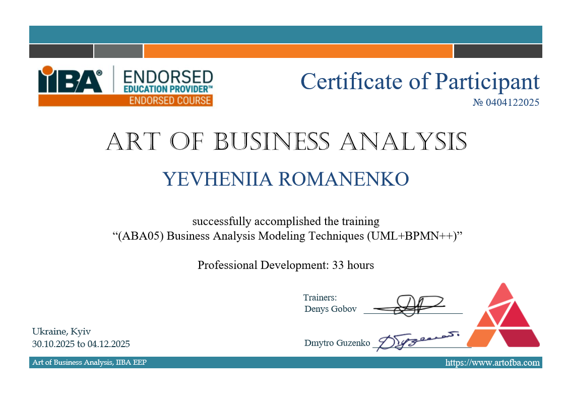 (ABA05) Business Analysis Modeling Techniques (UML+BPMN++)