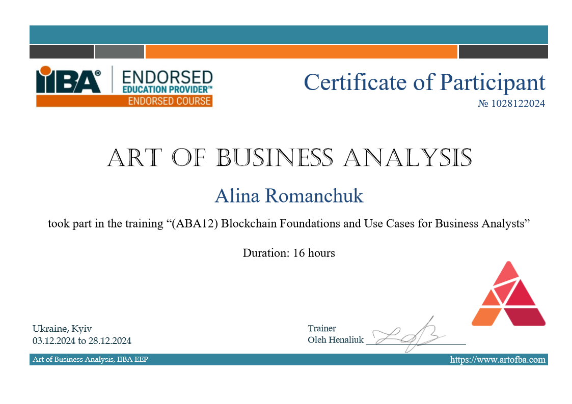 (ABA12) Blockchain Foundations and Use Cases for Business Analysts