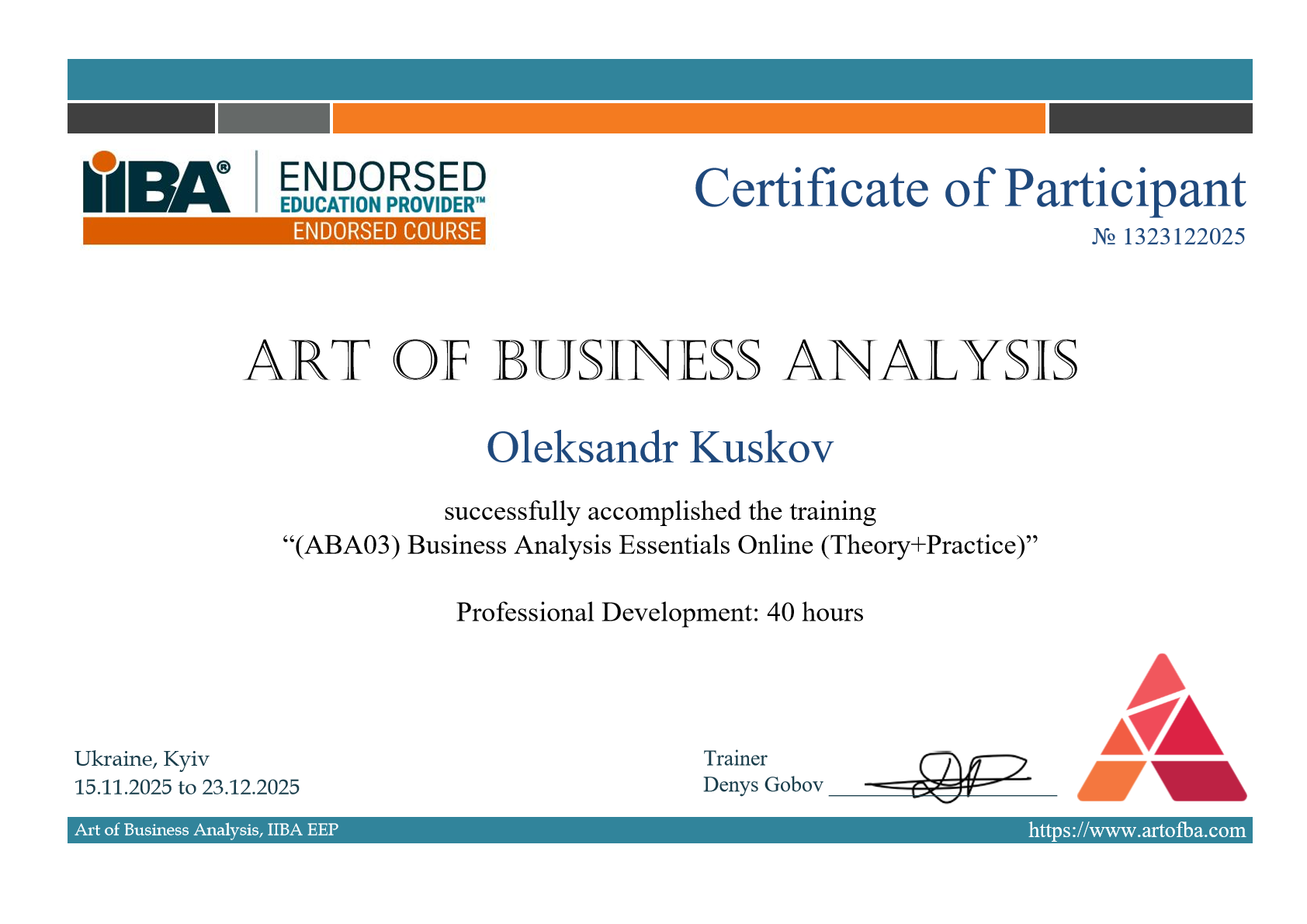 (ABA03) Business Analysis Essentials Online (Theory+Practice)